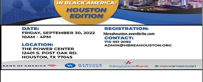 State of Housing in Black American- Houston Edition HBREA Presents an overview of S.H.I.B.A. the Houston Edition- State of Homeownership in Black America Location: "The Power Center" 12401 S Post Oak Rd Houston, TX 77045 Join the collaborative genius of HBREA, NAREB, TAREB and Industry Supporters and Professionals as they take you through the journey